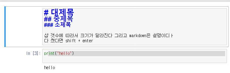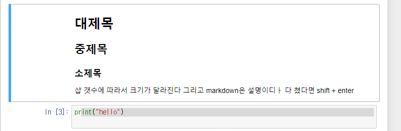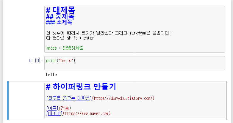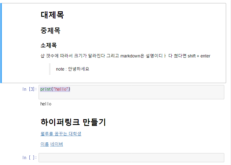 코드 실행하면 바로 밑에 결과가 뜨고 해당 코드에 대한 설명을 html로 첨부가 가능한 것이 jupyter notebook !!!