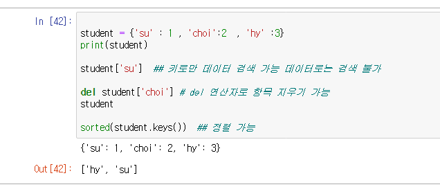 - 키는 문자열이나 숫자가 될 수 이지만 변하면 안 됨