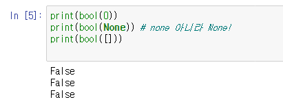 - 값이 o이나 None ㅇ이면 false 그 외이면 true