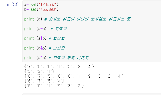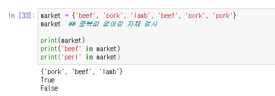 - 중괄호나 set() 함수로 생성