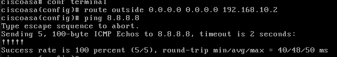 ciscoasa(config)# route outside 0.0.0.0 0.0.0.0 192.168.10.2