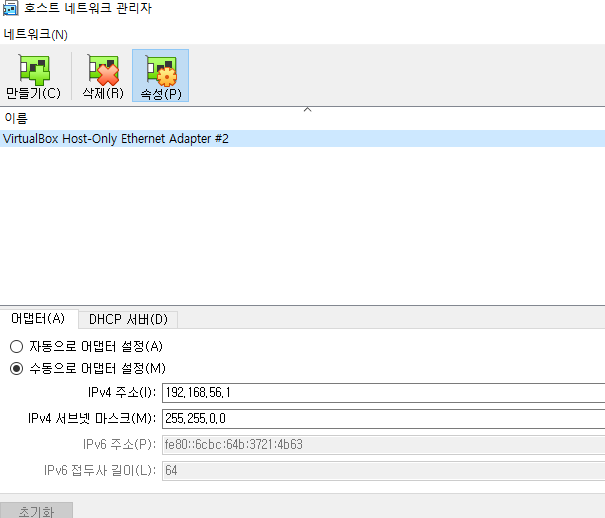 네트워크 2 로 호스트 어뎁터 설정한다고 했는데 오류가 나서