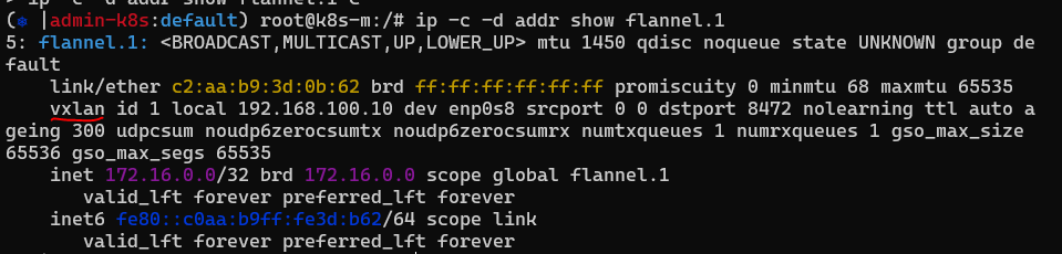 5: flannel.1: <BROADCAST,MULTICAST,UP,LOWER_UP> mtu 1450 qdisc noqueue state UNKNOWN mode DEFAULT group default