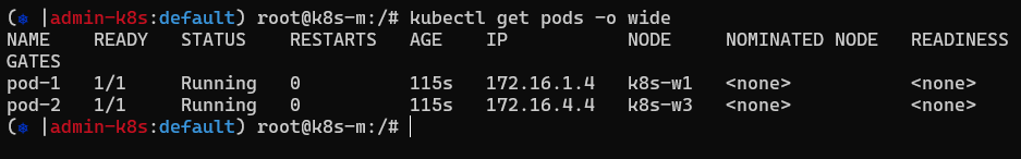 - pod-1 : w1 172.16.1.4