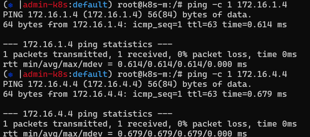 - 라우팅 정보를 보면 0:마스터 1:워커1 2:워커2 , 4:워커3 의 flannel 인터페이스 마스터에서 2.0대역 보내려면 워커노드 2쪽으로 보내라