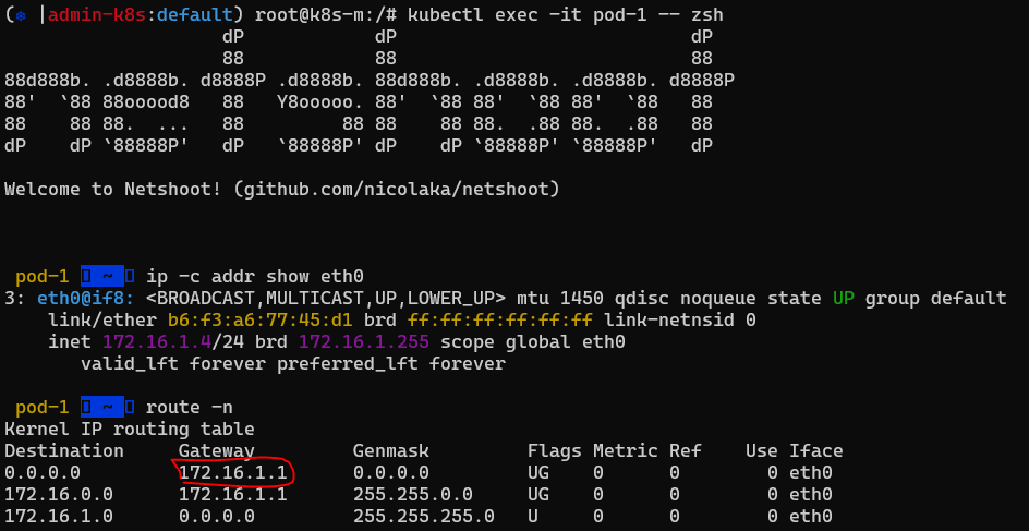 - 디폴트게이트웨이 주소 172.16.1.1 = cni0의 ip 주소
