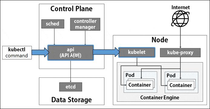 - kubelet이라는 데몬을 통해 마스터 노드의 api와 통신하면서 동작