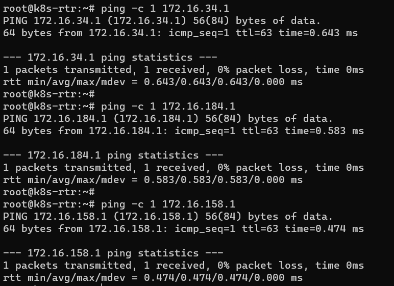# 설정 후 라우터에서 pod 쪽으로 통신이 원할하게 잘 됨