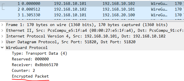 # 패킷 확인시 암호화 되어 있고 프로토콜은 wiregurad