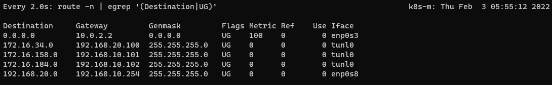 # 다른 네트워크 대역만 tunnel로 나가도록 설정됨
