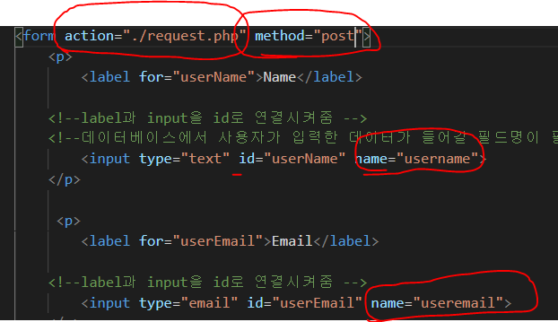 <!--데이터베이스에서 사용자가 입력한 데이터가 들어갈 필드명이 필요 name-->