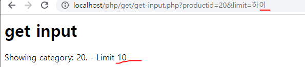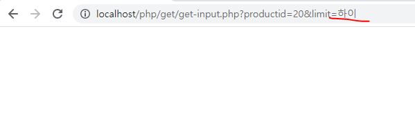 - productid 라는 값이 20이 넘어오면 이 페이지 get-input.php 파일에 $product_id에 저장되어 출력됨