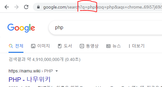 ?q=검색어 : 쿼리로 해당 검색어를 질의