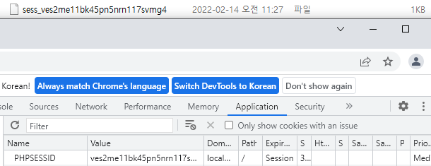 해당 경로의 session 파일과 브라우저 상에서 보이는 session 파일명이 같음
