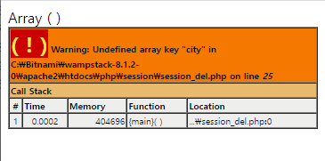 - 세션 변수가 지워짐 /// echo $_SESSION['city'];