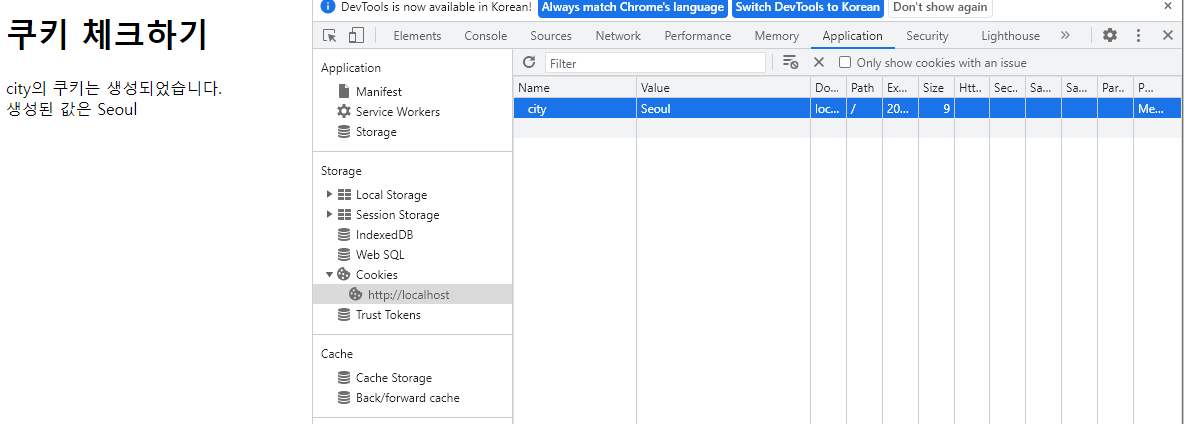 생성되어 있는 쿠키를 확인 함