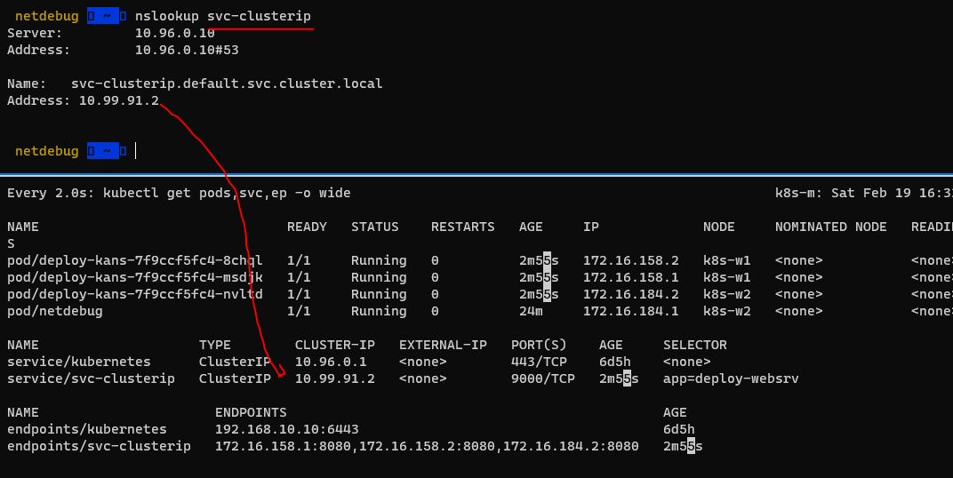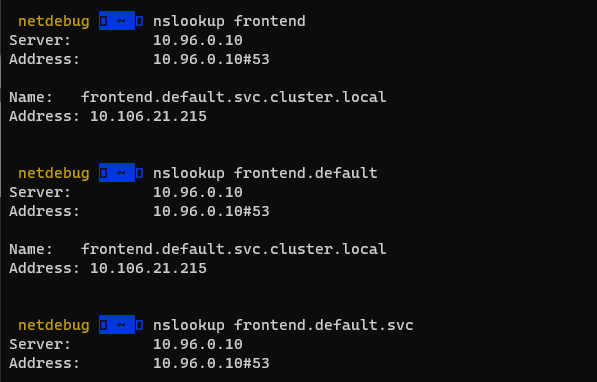 -10.96.0.10 클러스터 ip에다가 dns 질의