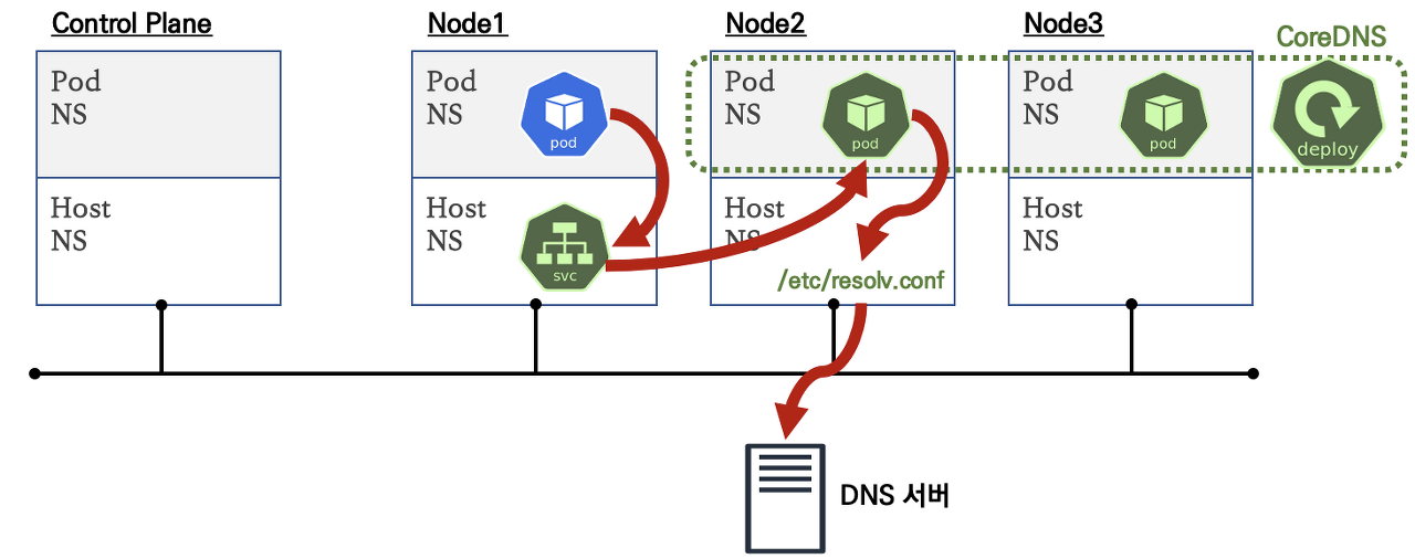 - DNS 서버 역할을 해주는 파드