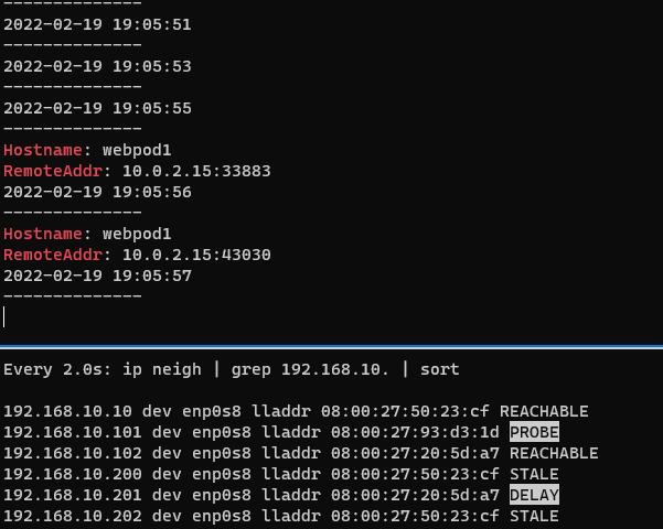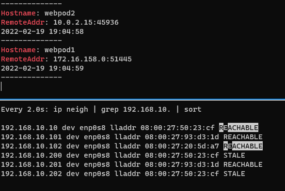 다시 w1 기동시 201ip가 w1맥을 가져가고 연결이 다시 시작 -> 시간이 오래걸림 -> bgp모드 쓰자