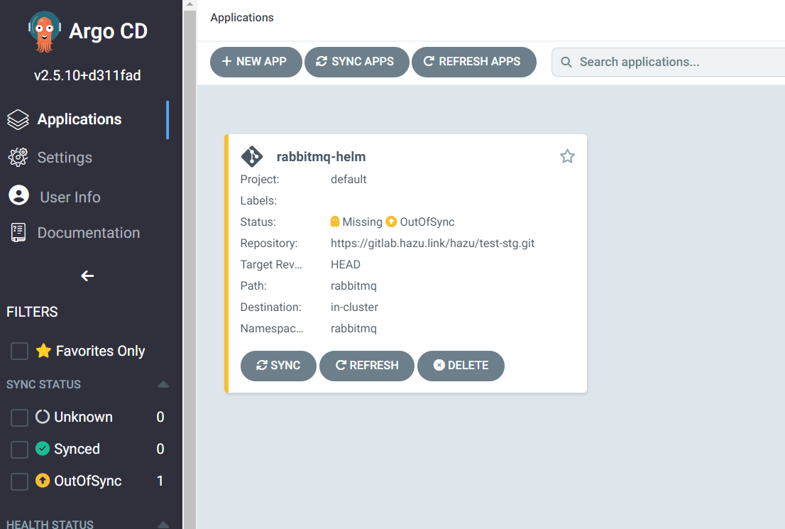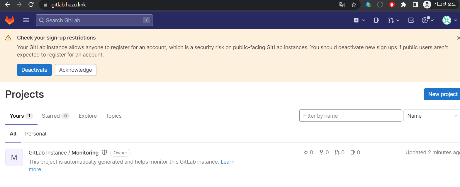 - sync 버튼 눌러서 깃랩에 저장되어 있는 상태로 디플로이 함