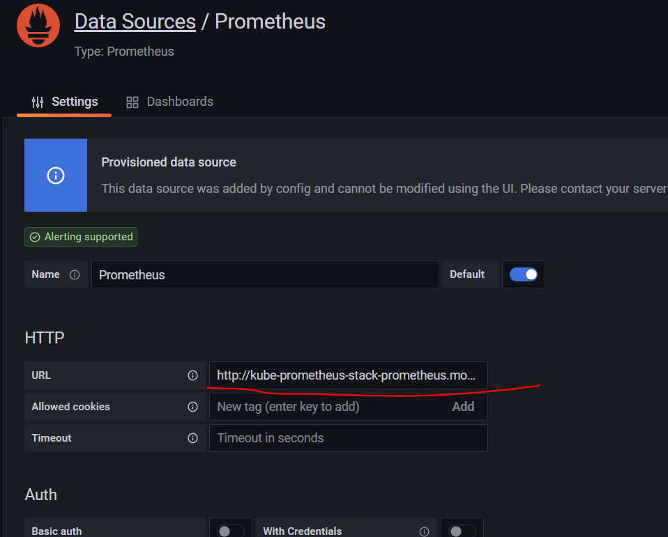 스택으로 설치해서 기본 프로메테우스 정보가 세팅되어 있고