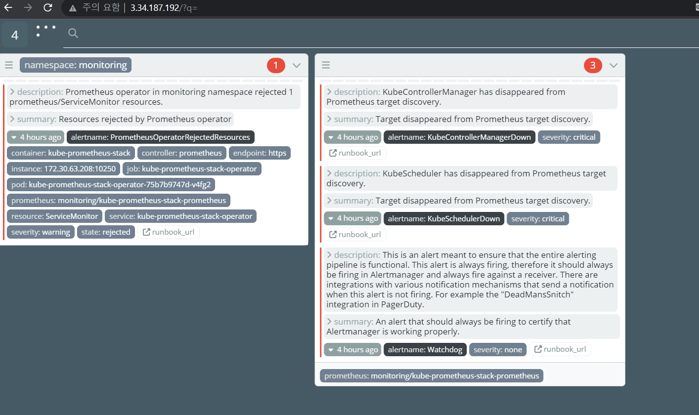 프로메테우스에 Alerts발생하면 얼럿매니저로 넘어감