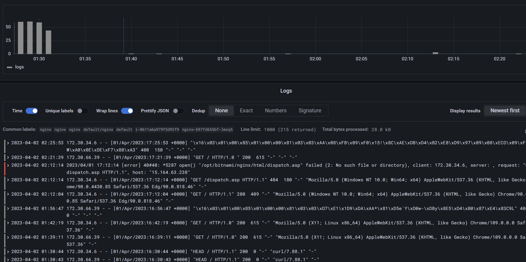 - Promtal + Loki + Grafana