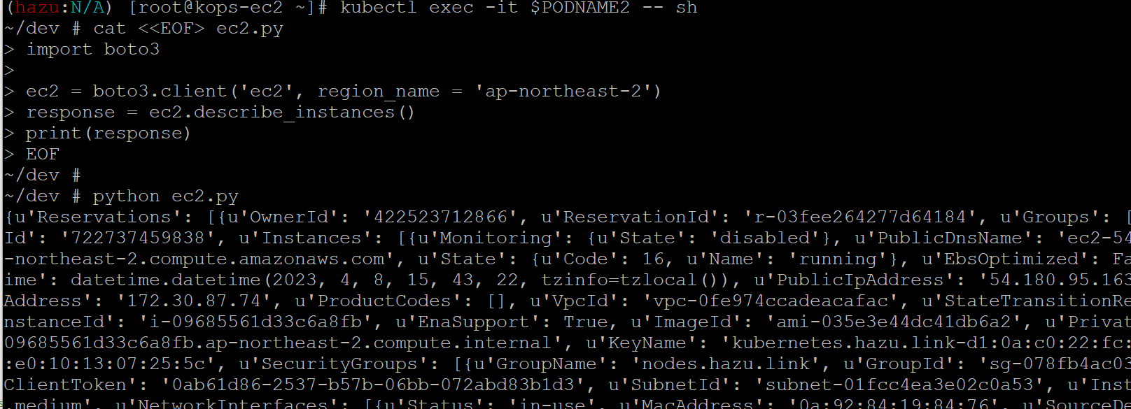 (hazu:N/A) [root@kops-ec2 ~]# kubectl exec -it $PODNAME2 -- curl 169.254.169.254/latest/meta-data/iam/security-credentials/ ;echo
