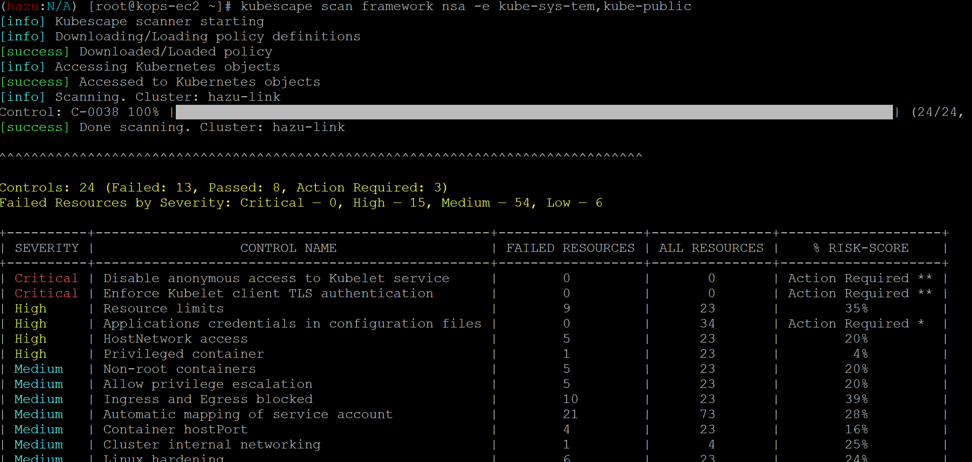 - 보안 권고 사항 대비 지금 구성된 클러스터의 취약점을 점검하는 도구